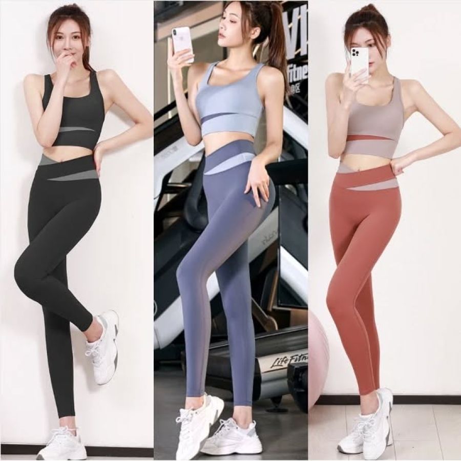ชุดโยคะทูโทน ชุดออกกำลังกาย ชุดฟิตเนส สปอร์ตบรา644 / กางเกงขายาว044